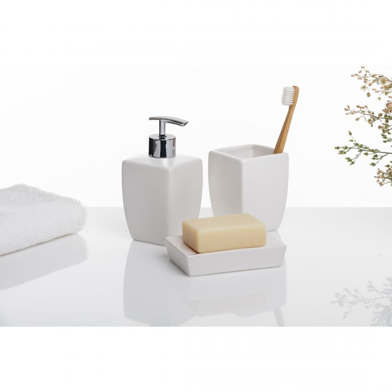 · DESIGN MODERNO: Portaspazzolino con linee arrotondate in bianco, ideale per aggiungere un tocco moderno e funzionale al bagno.