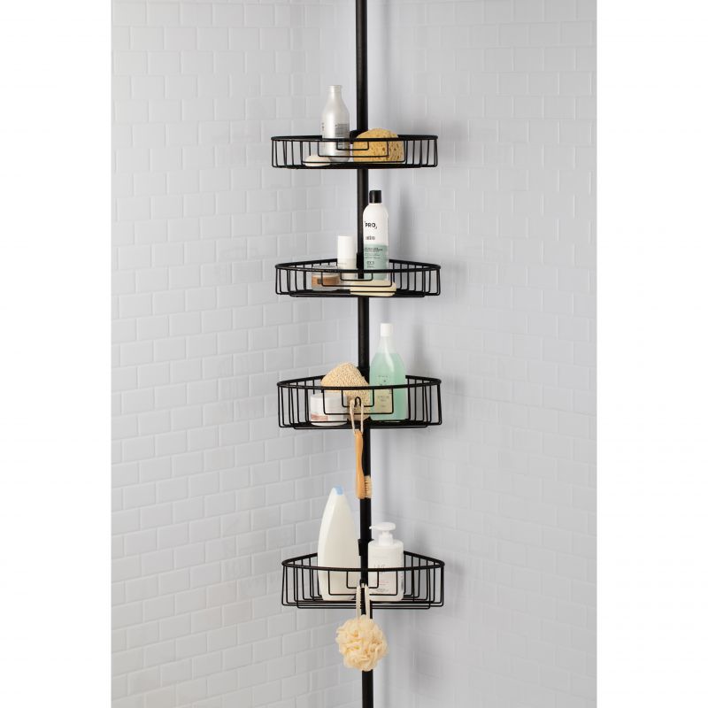 Tatay - Prodotti - Asta doccia telescopica con 4 cestelli regolabili, fissaggio a pressione senz