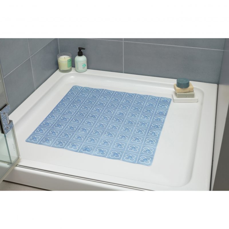 Tappetino doccia in PVC resistente a muffa e batteri, con certificazione antiscivolo BS8445 per maggiore sicurezza. Il suo design BCN, ispirato alle piastrelle di Barcellona, si integra in qualsiasi doccia. Misura 54 × 54 cm e finitura acqua, ideale per aggiungere stile e stabilità in bagno.