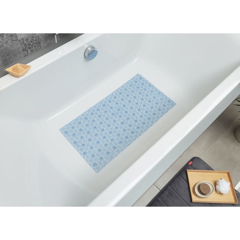 Tappetino doccia in PVC resistente a muffa e batteri, con certificazione antiscivolo BS8445 per maggiore sicurezza. Il suo design geometrico a forma di diamante porta eleganza ed equilibrio visivo al bagno. Misura 72 × 36 cm e finitura acqua, ideale per trasformare la doccia in uno spazio più attento e armonioso.
