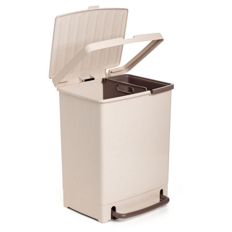 Il contenitore del riciclo ECOHOME ha una capacità totale di 25L, è dotato di un pedale ed è realizzato in plastica resistente. Questo bidone della spazzatura è adatto per separare fino a due rifiuti diversi. Inoltre, grazie al suo design, puoi riciclare occupando il minor spazio possibile ed è facile da pulire. Il contenitore del riciclo ha delle fessure sul retro per facilitare il posizionamento della borsa.