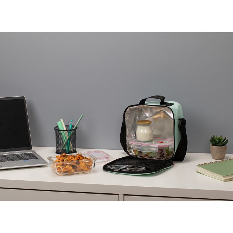 L’Urban Food Casual è una borsa termica per alimenti con manico superiore e tracolla estensibile. Il materiale tessile semirigido protegge il contenuto da possibili urti mentre all’interno ha un isolante che garantisce una migliore conservazione degli alimenti. Include 2 contenitori rettangolari in vetro borosilicato da 0,57 L, con valvola in silicone per il rilascio del vapore. Questi contenitori per alimenti sono completamente ermetici e adatti al microonde fino a 100º. In frigorifero possono durare fino al -40% e in forno 450º. Ha un’elevata capacità di resistenza agli shock termici, quindi puoi utilizzare questi contenitori per alimenti direttamente dal congelatore al microonde.