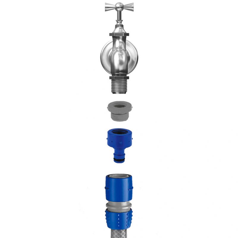 Il kit di raccordo e connettore della gamma Top Line è realizzato in plastica di alta qualità, compatibile con tutti i tipi di connettori rapidi e resistente ai raggi solari.