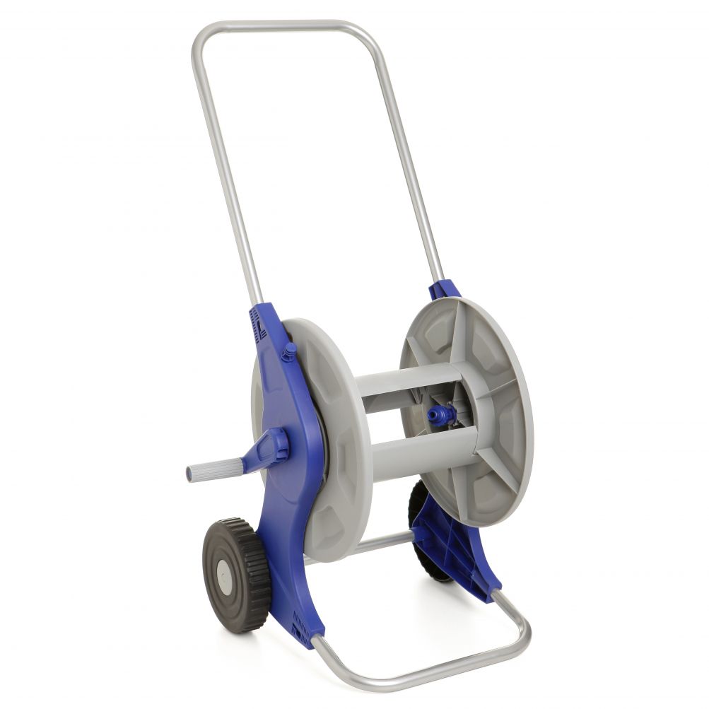 El carro portamanguera Top Line facilita el almacenamiento y el transporte de la manguera, permitiéndote regar cómodamente cualquier zona del jardín. Su diseño ergonómico mejora el manejo durante el uso, mientras que su estructura protege la manguera del sol y del desgaste diario. Compacto, práctico y con un atractivo acabado en color azul y gris, es la solución ideal para mantener el jardín ordenado y el riego siempre bajo control.