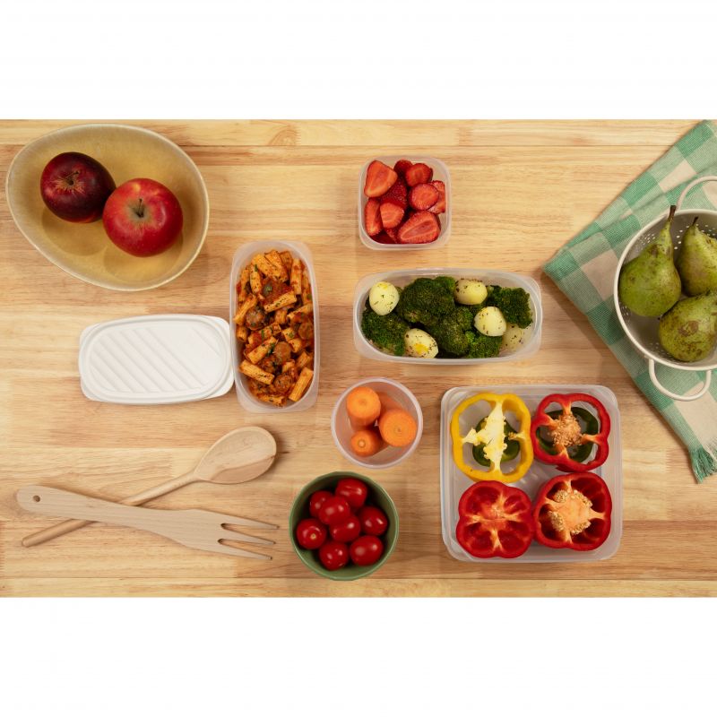 Los contenedores de alimentos Twist son fabricados con plástico de alta calidad y libres de BPA. Estos contenedores de alimentos son herméticos y con tapa de cierre con rosca, asegurando una mejor conservación de los alimentos. Son aptos para su uso en microondas (hasta 100 grados), en congelador (-40 grados) y en lavavajillas.