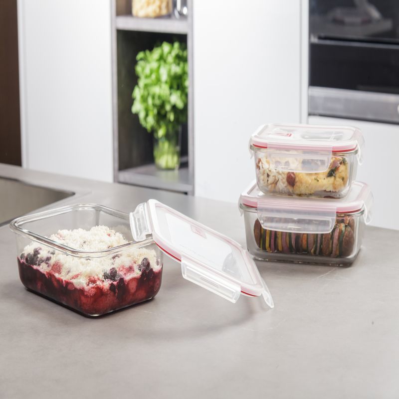 Los contenedores de alimentos de TATAY son fabricados con vidrio de borosilicato de adecuada calidad y libres de BPA. Estos contenedores de alimentos son herméticas y con tapa de cierre con clip, asegurando una mejor conservación de los alimentos. Son aptos para su uso en microondas (hasta 100 grados), en congelador (-40 grados) y en lavavajillas. Fiambreras de adecuada duración y con válvula de apertura en la tapa.
