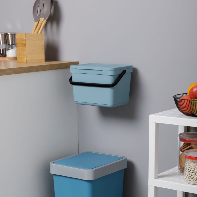 El cubo orgánico Smart está pensado para facilitar el reciclaje de restos orgánicos en espacios pequeños y reducidos. Este cubo con una capacidad de 6L, cuenta con un diseño moderno y elegante que encaja en cualquier rincón de la cocina. Su tapa permite evitar los malos olores y se mantiene adecuadamente cerrada. El cubo cuenta con un asa que facilita el transporte e incluye un soporte de pared que permite colgarlo, liberando espacio en el suelo.