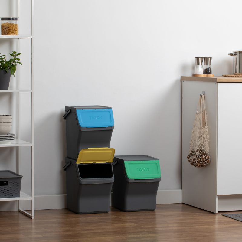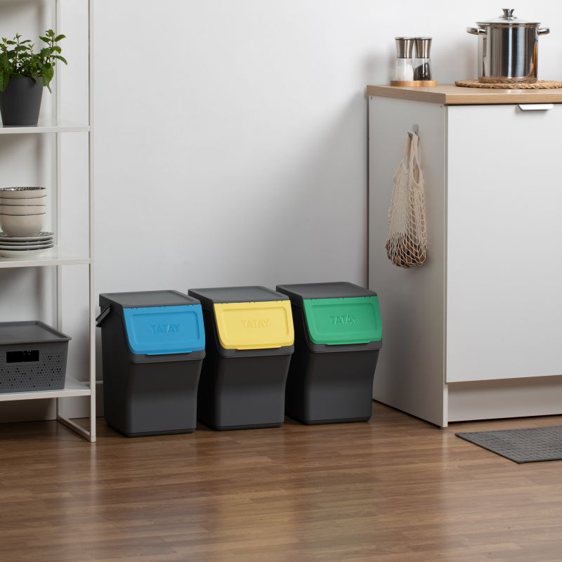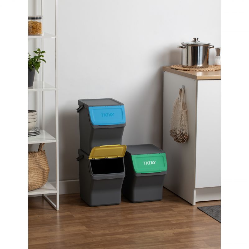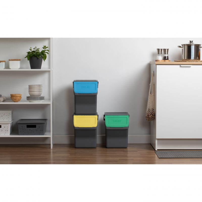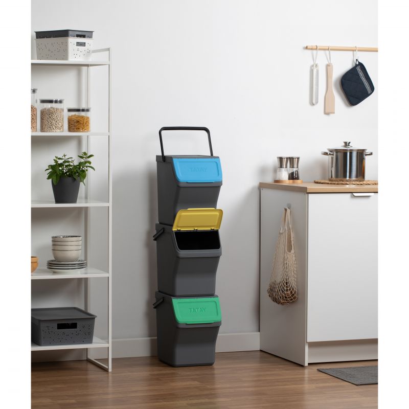 EASY WASTE - SET 3 CUBOS RECICLAJE MODULAR 20L GRIS ANTRACITA