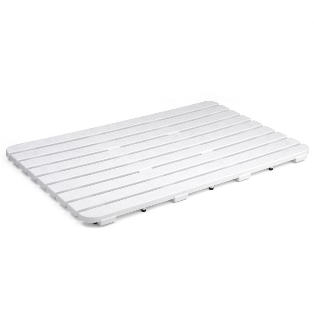 The shower mat made of non-slip plastic with a wood finish effect is ideal for both outdoors and indoors. Thanks to its composition and its Anti-UVA coating, this deck is protected from the harmful effects of the sun’s rays. Includes non-slip rubber pads for the base.