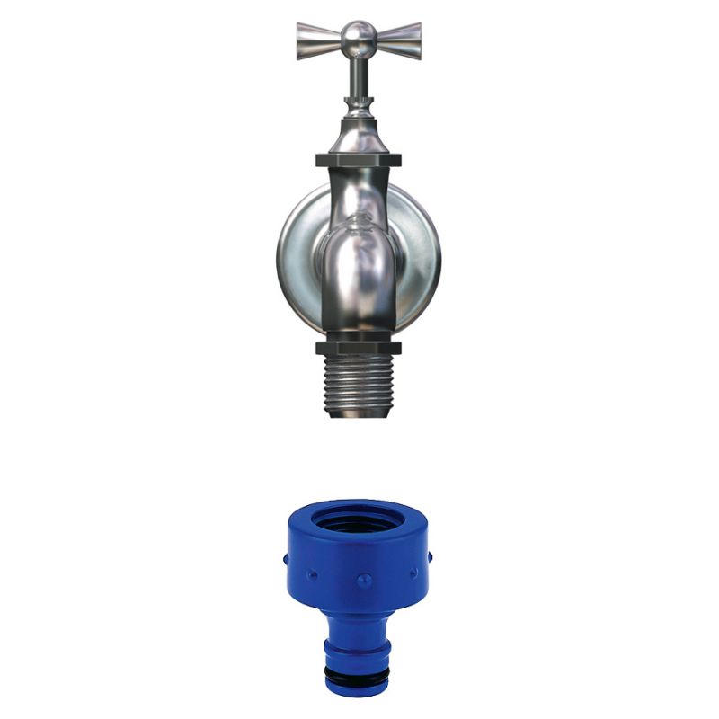 The faucet fitting from the Top Line range with universal connector for all types of quick connectors, universally compatible, is made with high quality plastic and is resistant to sunlight, ensuring durability and efficiency in outdoor use.
