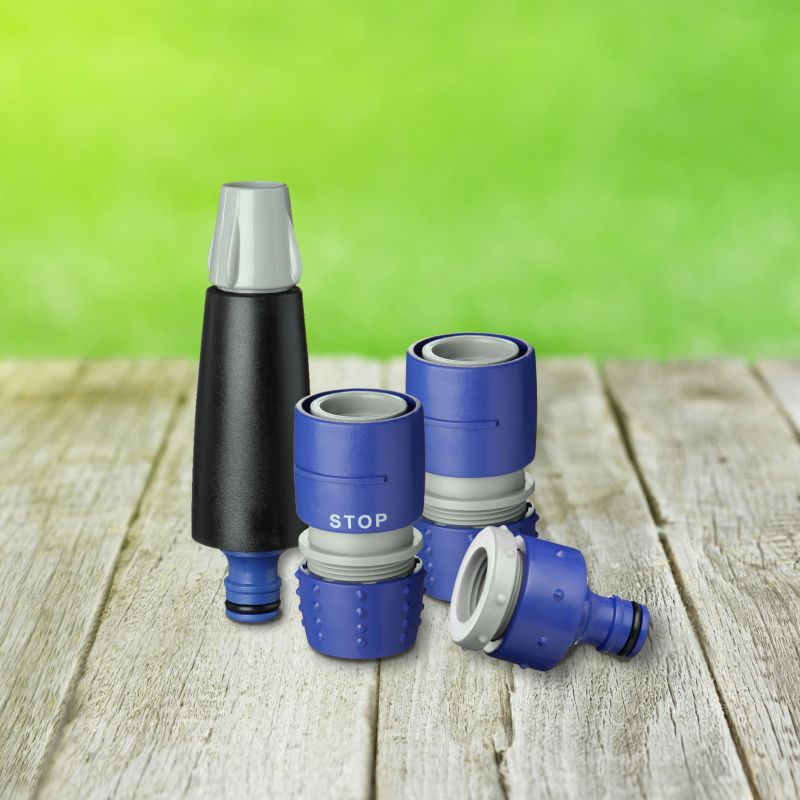 The faucet fitting from the Top Line range with universal connector for all types of quick connectors, universally compatible, is made with high quality plastic and is resistant to sunlight, ensuring durability and efficiency in outdoor use.