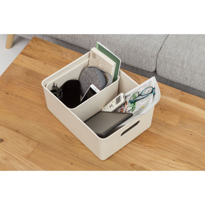 The organizers from the Baobab ECOHOME collection, with their elegant and functional design, are ideal for organizing all types of desk, living room, office, bathroom, cosmetics, etc. objects. This storage box has a design with vertical waves, discreet and elegant, it is very combinable with all types of rooms. It is possible to stack them with the lid and it is made of a highly resistant and flexible material. They contain side handles that facilitate handling and the sizes are suitable for drawers.