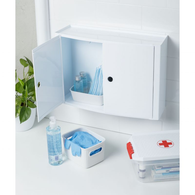 Le meuble de salle de bain horizontal optimise l’espace et offre une solution pratique et élégante. Fabriqué en plastique de haute qualité avec une finition blanche, il dispose d’un double système de fixation (vis ou kit Glue & Fix) pour l’installation sans percer. Elle supporte jusqu’à 8 kg et, grâce à ses dimensions compactes, apporte de l’ordre et une touche moderne à toute salle de bain.