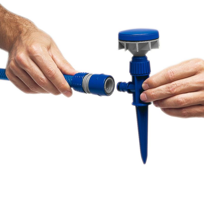 Le sprinkler rotatif à dispersion avec des couvre-pointes jusquà 135 m² et une vitesse darrosage de 25 litres par minute. Il fonctionne à 3 bars de pression et possède un connecteur universel. Son revêtement le protège des rayons du soleil.