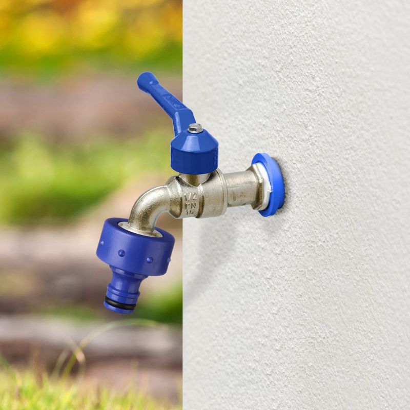Le raccord de prise de la gamme Top Line, avec un connecteur universel pour tous types de connecteurs rapides, universellement compatible, est fabriqué en plastique de haute qualité et résiste aux rayons du soleil, garantissant durabilité et efficacité en extérieur.
