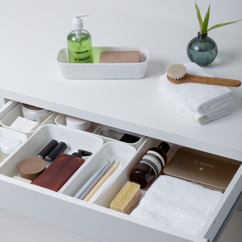 Les organisateurs de la série Baobab sont idéaux pour organiser et ranger des objets. Cette boîte de rangement a un design à vagues verticales, discret et élégant, et est très combinable avec différentes tailles de tiroirs.