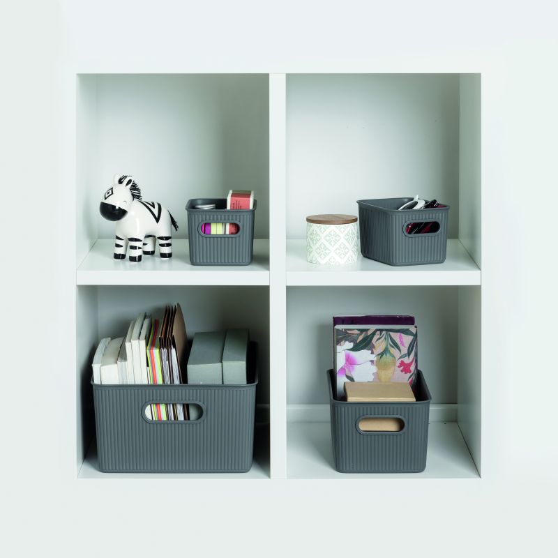 Le panier de rangement de la série Baobab, idéal pour organiser et ranger des objets. Ce caisson de rangement a un design aux vagues verticales, discret et élégant, il est très combinable avec tous types de pièces. Il est possible de les empiler avec le couvercle et celui-ci est réalisé dans un matériau très résistant et flexible. Ils contiennent des poignées latérales qui facilitent la manipulation et les dimensions sont adaptées aux tiroirs.
