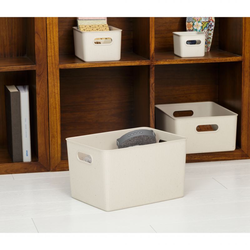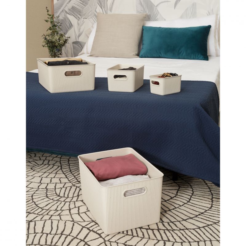 La collection Baobab ECOHOME se distingue par son design élégant et fonctionnel, avec une structure de ondulations verticales qui offre discrète et style. Les paniers sont parfaits pour organiser des objets sur le bureau, le salon, le bureau ou la salle de bain. Fabriquées en matériau résistant et flexible, elles sont empilables avec un couvercle et possèdent des poignées latérales pour une manipulation confortable.