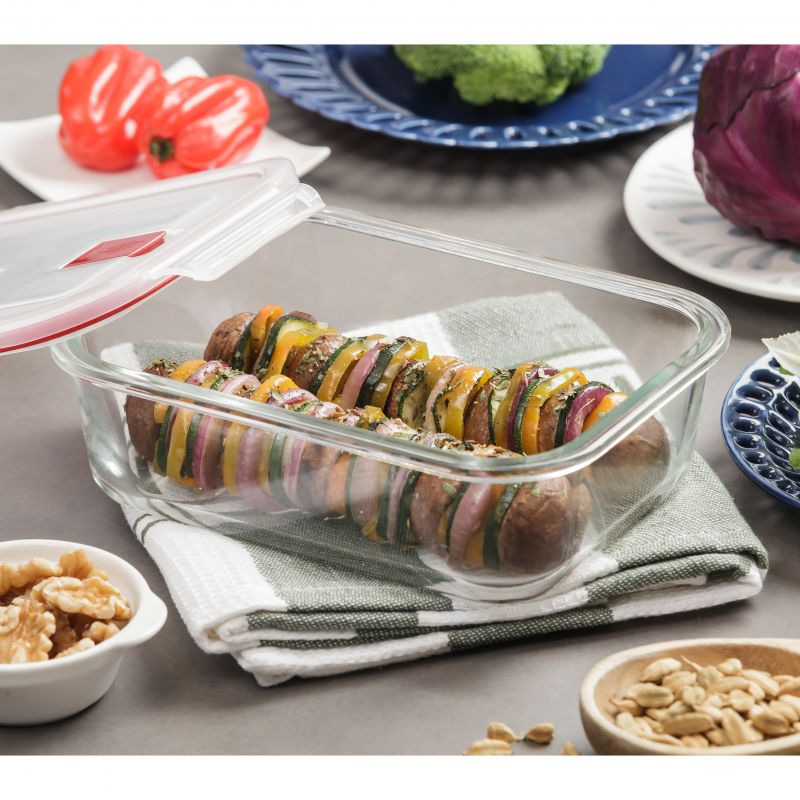 TATAY-Lebensmittelbehälter werden aus hochwertigem Borosilikatglas hergestellt und sind BPA-frei. Diese Lebensmittelbehälter sind luftdicht und verfügen über einen aufsteckbaren Deckel, der eine bessere Lebensmittelkonservierung gewährleistet. Sie sind für die Verwendung in der Mikrowelle (bis 100 Grad), im Gefrierschrank (-40 Grad) und in der Spülmaschine geeignet. Lunchboxen mit ausreichender Haltbarkeit und einem Öffnungsventil am Deckel.