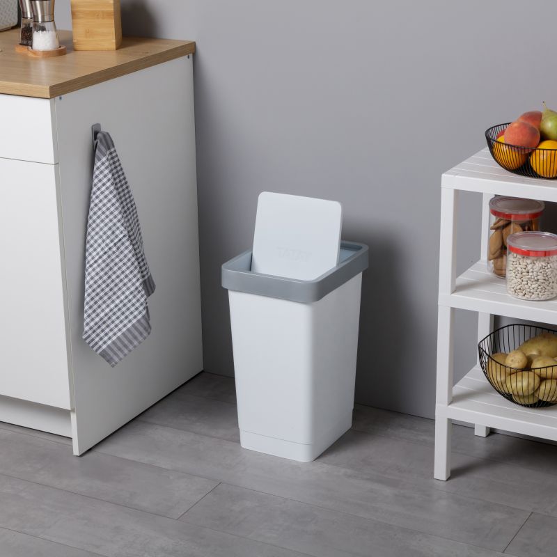 Der Mülleimer mit einem Fassungsvermögen von 25L und Schwingdeckel besteht aus hochwertigem Kunststoff. Dieser Mülleimer ist ideal für die Küche und durch die Tatsache, dass er aus wenigen Teilen besteht, ist er einfach und leicht zu reinigen. Der Recyclingbehälter verfügt über Schlitze auf der Rückseite zum einfachen Platzieren des Beutels. Dieser Behälter ist für 30-Liter-Müllsäcke in Standardgröße geeignet.