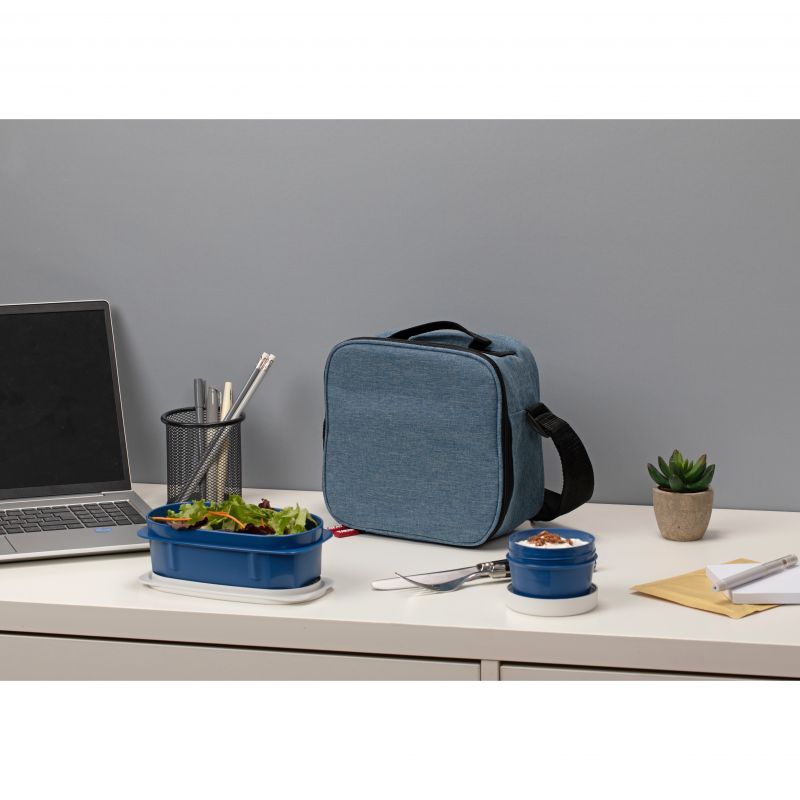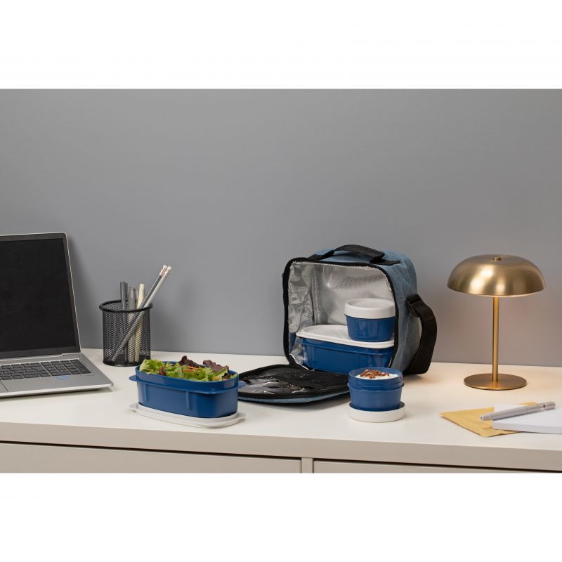 Der Urban Food Casual ist eine Thermo-Lebensmitteltasche mit Tragegriff oben und ausziehbarem Schultergurt. Das halbstarre Textilmaterial schützt den Inhalt vor möglichen Stößen und verfügt im Inneren über eine Isolierung, die für eine bessere Lebensmittelkonservierung sorgt. Enthält 2 ovale 0,5-l-Behälter und 2 runde 0,2-l-Behälter aus BPA-freiem Kunststoff. Diese Lebensmittelbehälter sind absolut luftdicht und mikrowellengeeignet bis 100 °C. Im Kühlschrank sind sie bis zu -40 % haltbar.