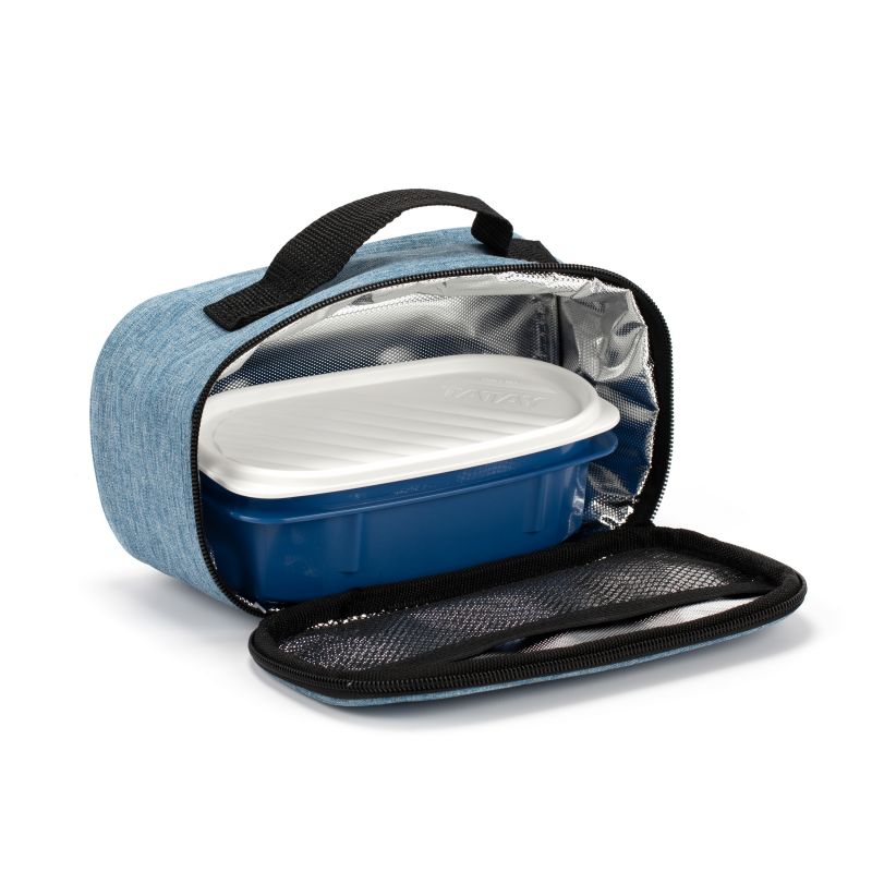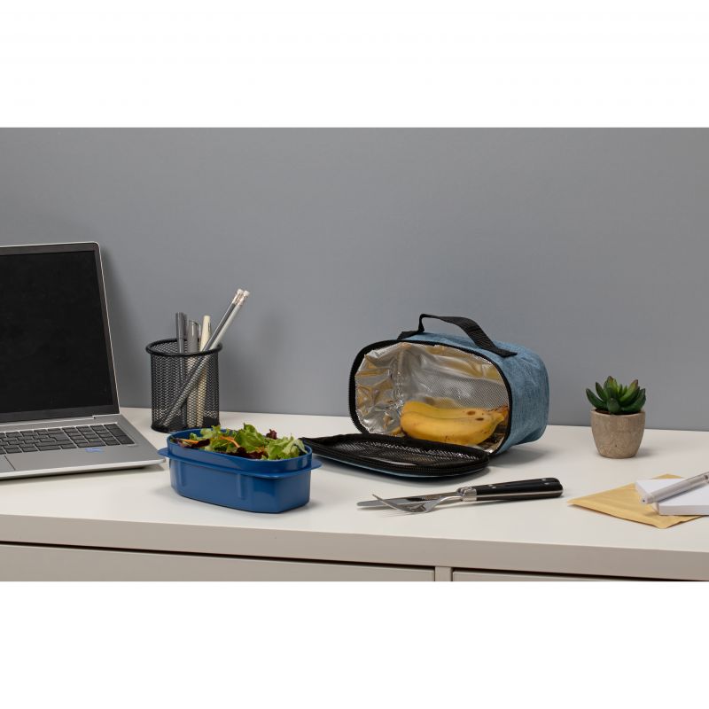Der Urban Food Mini ist ein Thermo-Lebensmittelbeutel mit Tragegriff oben. Das halbstarre Textilmaterial schützt den Inhalt vor möglichen Stößen und verfügt im Inneren über eine Isolierung, die für eine bessere Lebensmittelkonservierung sorgt. Enthält 1 1,5-Liter-Lunchbox aus Kunststoff. Diese Lebensmittelbehälter sind absolut luftdicht und mikrowellengeeignet bis 100 °C. Im Kühlschrank sind sie bis zu -40 % haltbar.