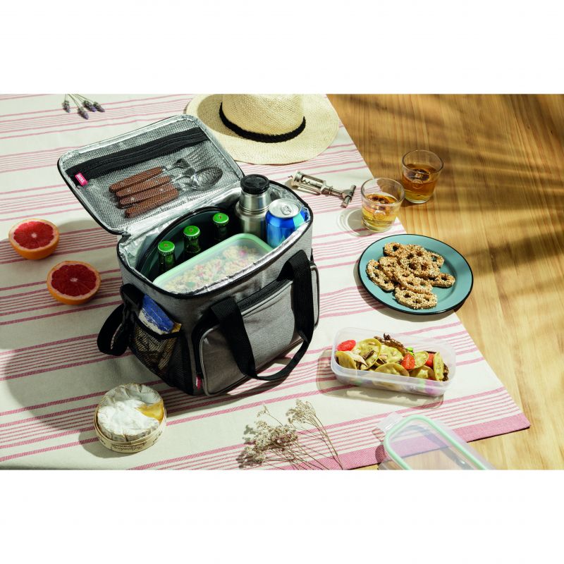 Diese Urban Food Picnic-Thermotasche ist ideal für den Transport von Lebensmitteln mit einem Fassungsvermögen von bis zu 11 l. Diese Tasche besteht aus einem dreischichtigen Isoliermaterial (widerstandsfähige Textilschicht aus 100 % Polyester, thermische Schwammschicht und thermische Schicht aus Aluminiumfolie). Es ist absolut flexibel und vielseitig, mit einer Öffnung oben und zwei Netztaschen außen. Es verfügt über Griffe mit Polsterung und einen abnehmbaren und verstellbaren Schultergurt mit Polsterung. Es ist vollständig wasserdicht, sodass Eis und erfrischende Getränke bedenkenlos mitgeführt werden können. Es ist perfekt für Picknicks und Snacks!