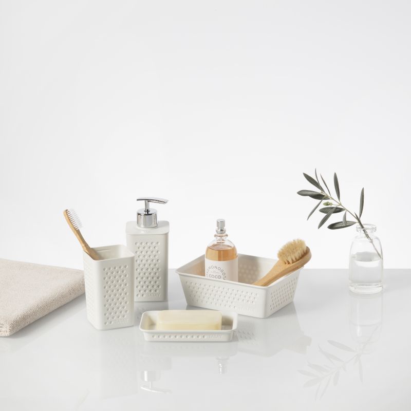 A coleção BOHOL, uma seleção elegante e ecológica de produtos de organização e decoração, inspirada na natureza deslumbrante de Bohol e feita com materiais reciclados. Esta coleção oferece uma gama completa de organização decorativa para casa. Os nossos produtos são fabricados com Plástico reciclado de Alta Qualidade e possuem designs modernos e elegantes que se adaptam perfeitamente a qualquer casa de banho. A gama BOHOL, graças aos orifícios de ventilação estrategicamente concebidos, cria uma respirabilidade ideal.