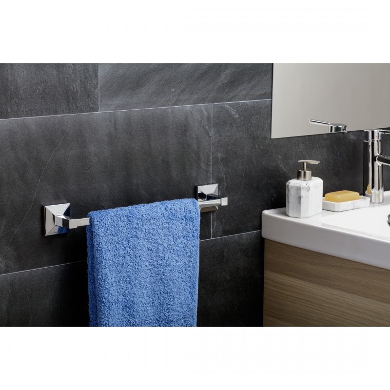 A coleção de acessórios de parede e banheiro Iconik se destaca pelo material de fabricação em zamak, liga de alumínio, magnésio e cobre, com acabamento cromado combinado com aço inoxidável. O toalheiro pode ser instalado com os parafusos incluídos ou com o kit Glue Fix vendido separadamente. Além disso, o seu design discreto e minimalista torna-o no acessório perfeito para a sua casa de banho. Os materiais utilizados e a experiência certificada da TATAY garantem a durabilidade e qualidade deste produto que se tornará parte essencial do seu banheiro.