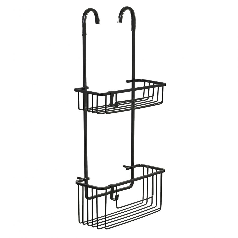 Cesto para torneira TATAY de 2 alturas, feito de alumínio de alta qualidade. Este acessório não necessita de furação para instalação, oferecendo uma solução prática e elegante para organizar seus produtos de banheiro. Acabamento preto.