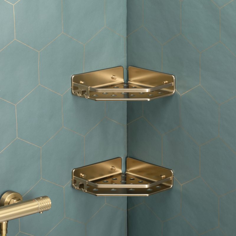 O cesto de canto TATAY Serenity é fabricado em alumínio 100% inox, garantindo longa durabilidade e resistência em ambientes úmidos. O seu design exclusivo e moderno adapta-se perfeitamente aos estilos clássico, moderno e elegante. Inclui um cabide duplo para aumentar a sua funcionalidade. Além disso, oferece dois métodos de instalação para maior versatilidade: o sistema QuickFix, que permite a fixação sem necessidade de furadeira, e uma opção tradicional com parafusos incluídos para quem prefere uma instalação mais permanente. Com capacidade para suportar até 5 kg de peso, é perfeito para organizar géis, shampoos e outros produtos de banho, mantendo-os sempre acessíveis e seguros. O acabamento dourado acrescenta um toque de classe, tornando esta cesta prática e decorativa.