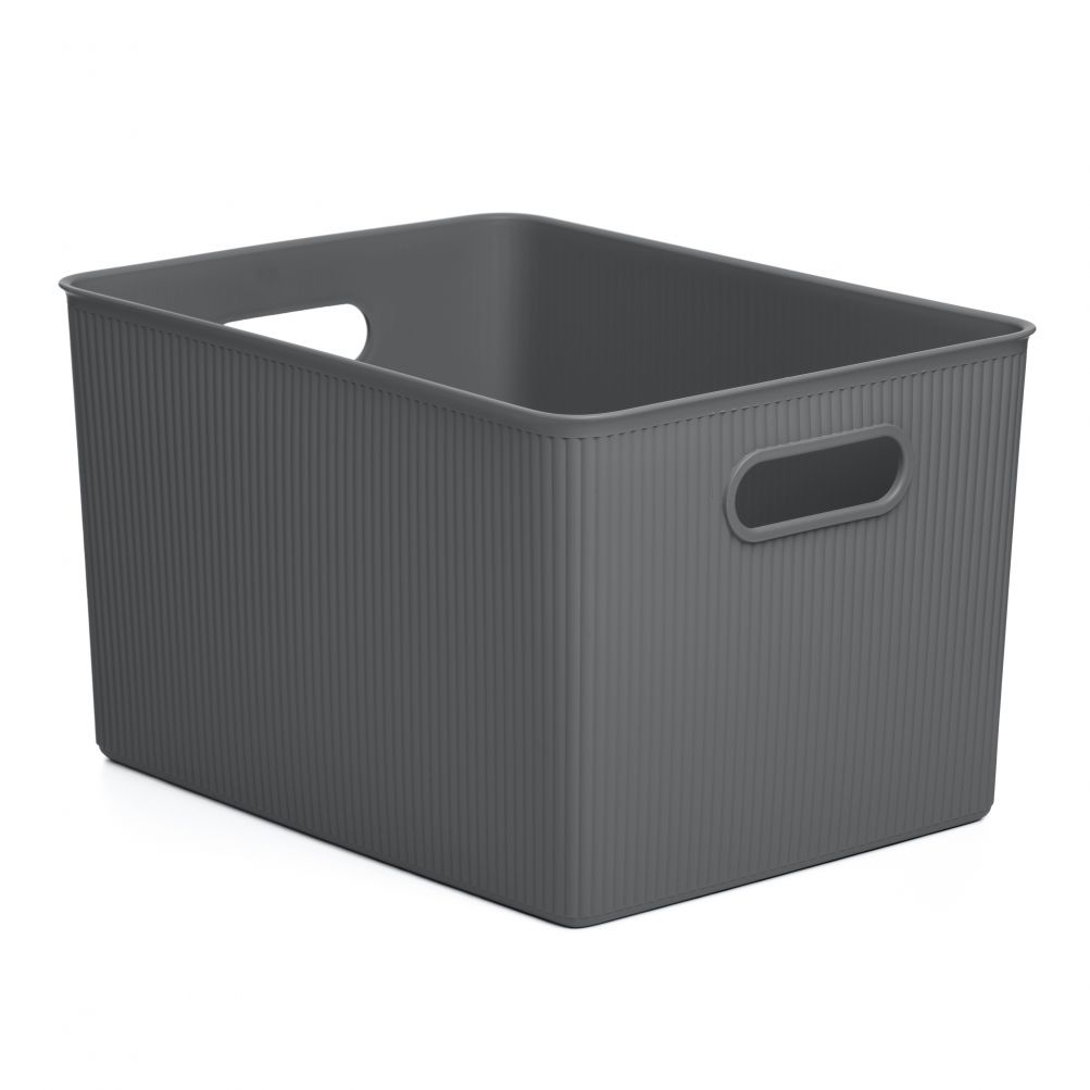 Cesto organizador da série Baobab, ideal para organizar e guardar objetos. Esta caixa de arrumação tem um design com ondas verticais, discreta e elegante, é muito combinável com todos os tipos de quartos. É possível empilhá-los com a tampa e é feita de um material altamente resistente e flexível. Contêm puxadores laterais que facilitam o manuseio e os tamanhos são adequados para gavetas.
