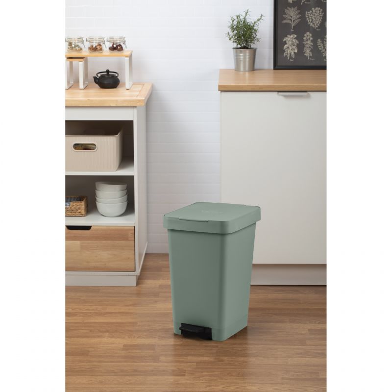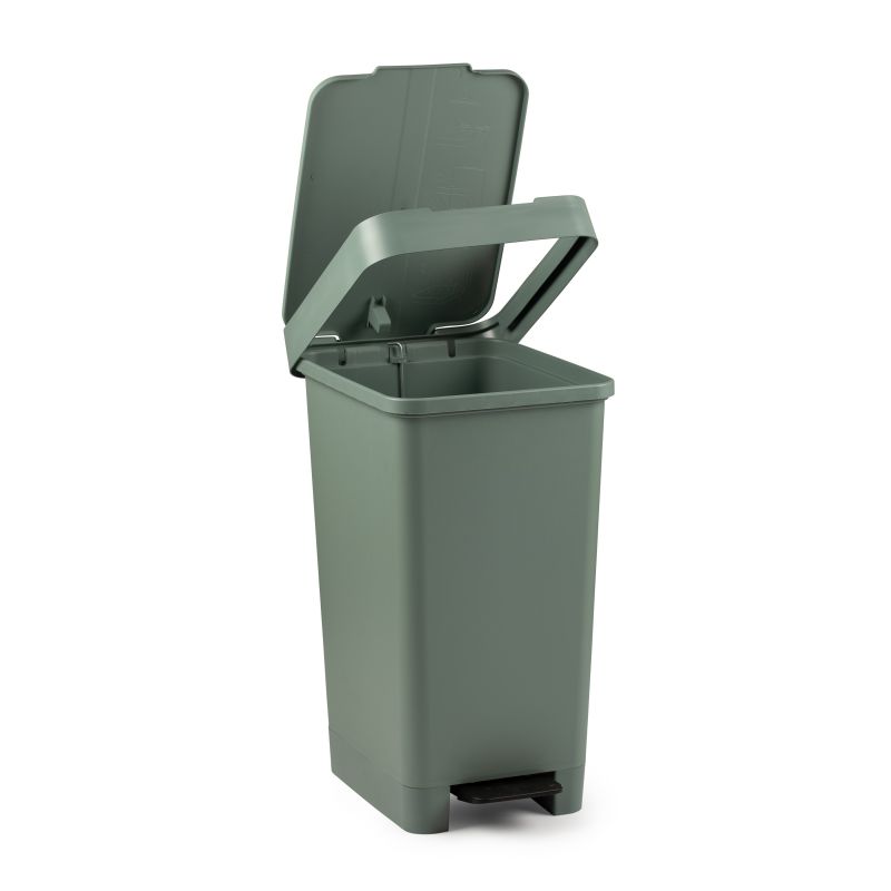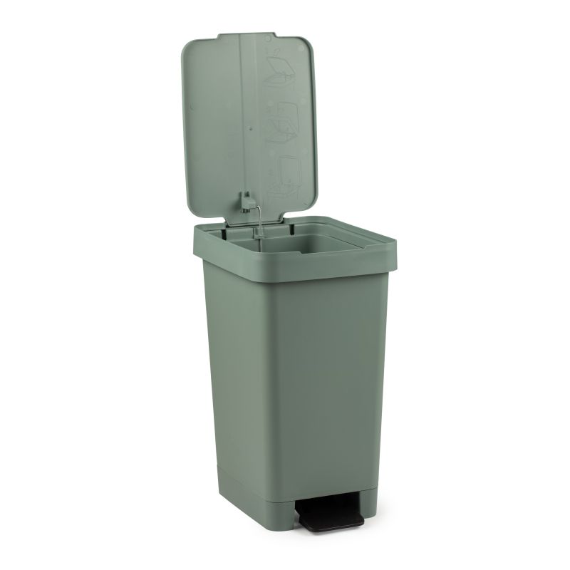 Esta lixeira tem capacidade para 25L com pedal e é feita de plástico de alta qualidade. Esta lixeira é ideal para a cozinha e o fato de ter poucas peças torna-a simples e fácil de limpar. A lixeira possui fendas na parte traseira para facilitar a colocação do saco. É adaptado para sacos de lixo de tamanho padrão de 30L.