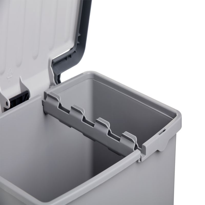Esta lixeira tem capacidade para 25L com pedal e é feita de plástico de alta qualidade. Esta lixeira é adequada para reciclagem e separação de resíduos de diversos tipos e em grandes quantidades. Além disso, graças ao seu design, você pode reciclar ocupando o mínimo de espaço possível e é fácil de limpar. A lixeira possui fendas na parte traseira para facilitar a colocação do saco.
